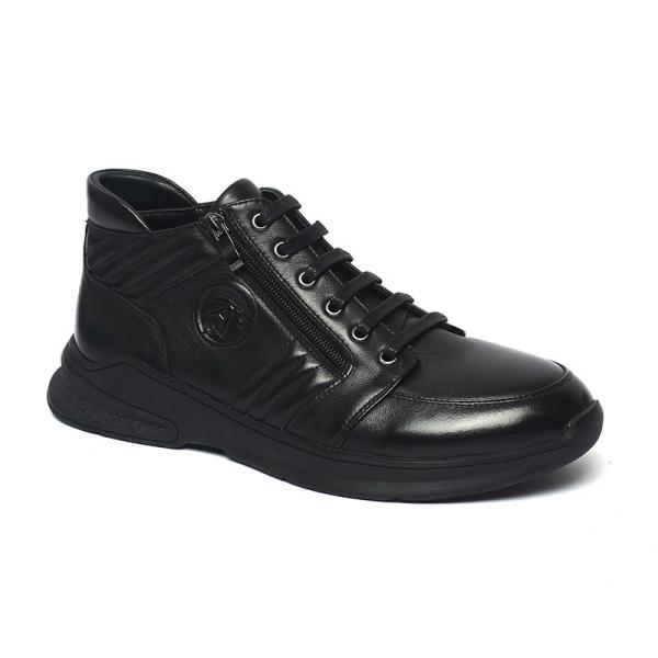 Men's black casual boots made of high-quality cow leather are characterized by a very fashionable, urban design. They gain a sporty character thanks to the comfortable sole, which draws curious glances with its interesting design. Good quality leather on the sides of the upper, heel and tongue as well as decorative zippers give the shoes an original look. Classic black boot above the ankle are a combination of a sporty, casual and elegant style.